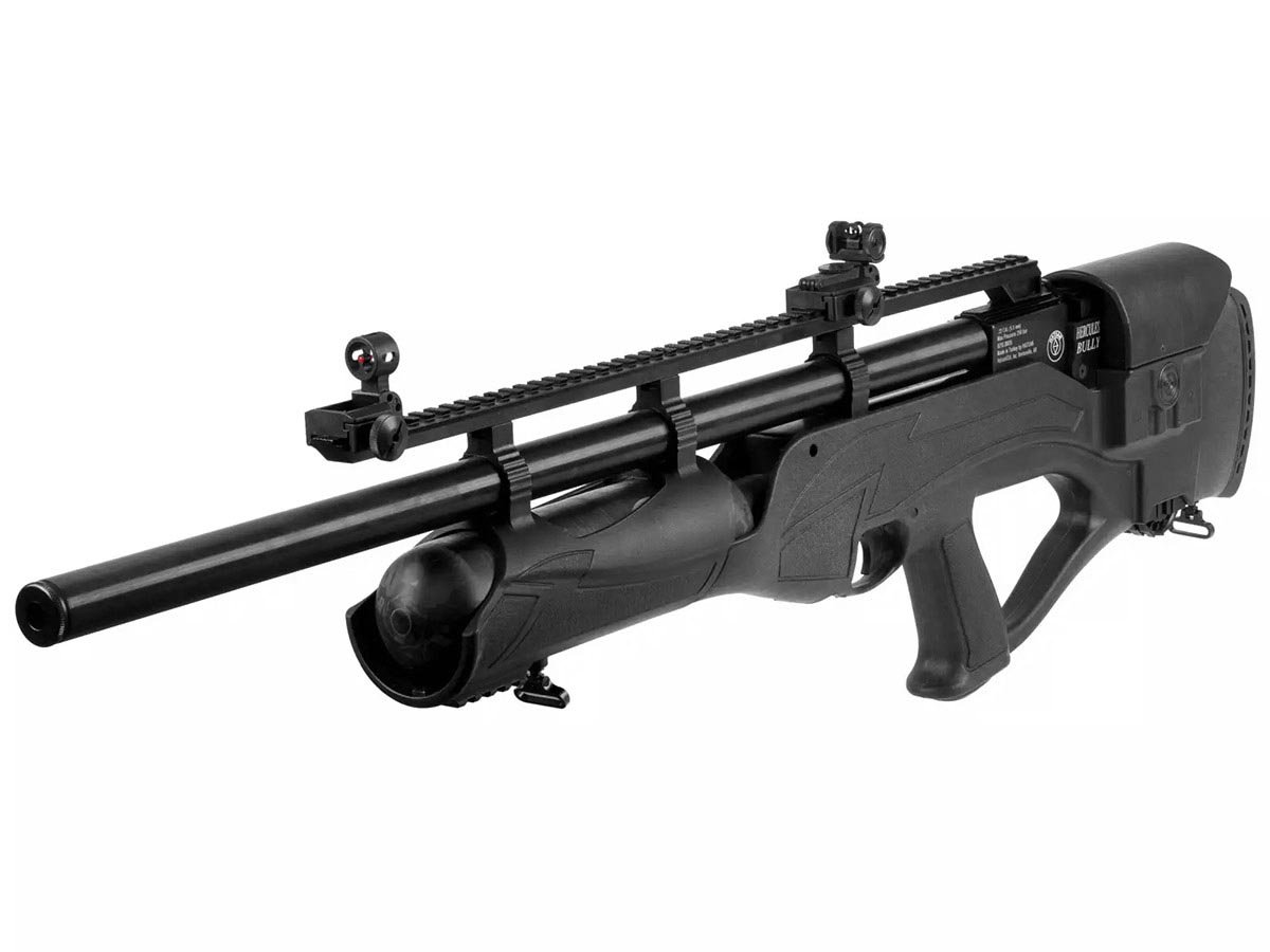 Hatsan Hercules Bully adalah senapan angin PCP bullpup yang ringkas, ringan, dan sangat serbaguna. Dengan stock sintetis ambidextrous dan fitur penyesuaian cheek rest, senapan ini cocok untuk berbagai gaya menembak. Tenaga yang dihasilkan cukup besar untuk berburu dan plinking dengan akurasi tinggi berkat laras rifled dan choke. Dilengkapi dengan sistem peredam suara terintegrasi, Bully memberikan tembakan yang lebih senyap tanpa mengurangi performa.