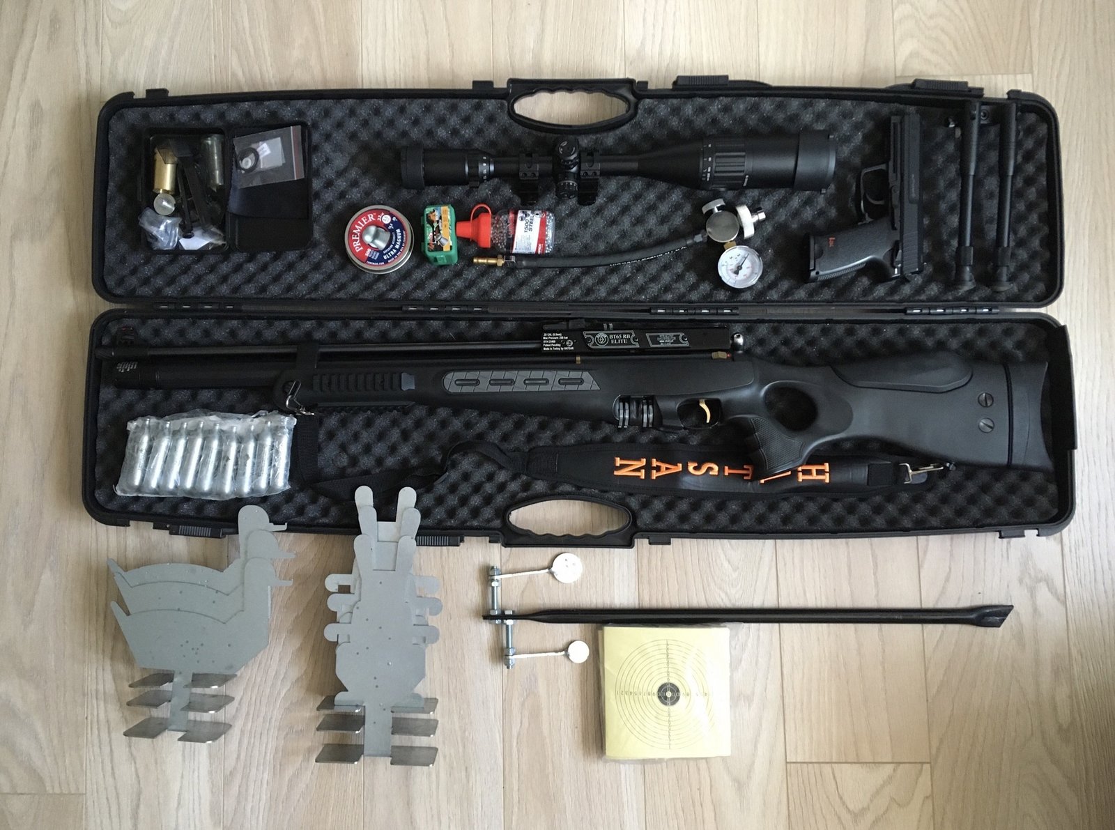 Senapan Angin PCP Import Hatsan Arms BT65 Cal 0.177 adalah Senapan PCP yang menawarkan lebih banyak energi kecepatan. Semua fitur BT65 laras panjang yang mempunyai kecepatan sebesar 1250 fps. senapan ini sangat cocok digunakan untuk keperluan berburu. Senapan PCP import Hatsan Arms BT65 di rekomendasikan khusus untuk berburu. Senapan angin ini memiliki tenaga atau power yang sangat kuat serta memiliki akurasi yang sangat bangus sehingga sangat cocok digunakan untuk olahraga menembak serta berburu hewan besar seperti : Babi, Rusa, Kijang, Kelinci dll.