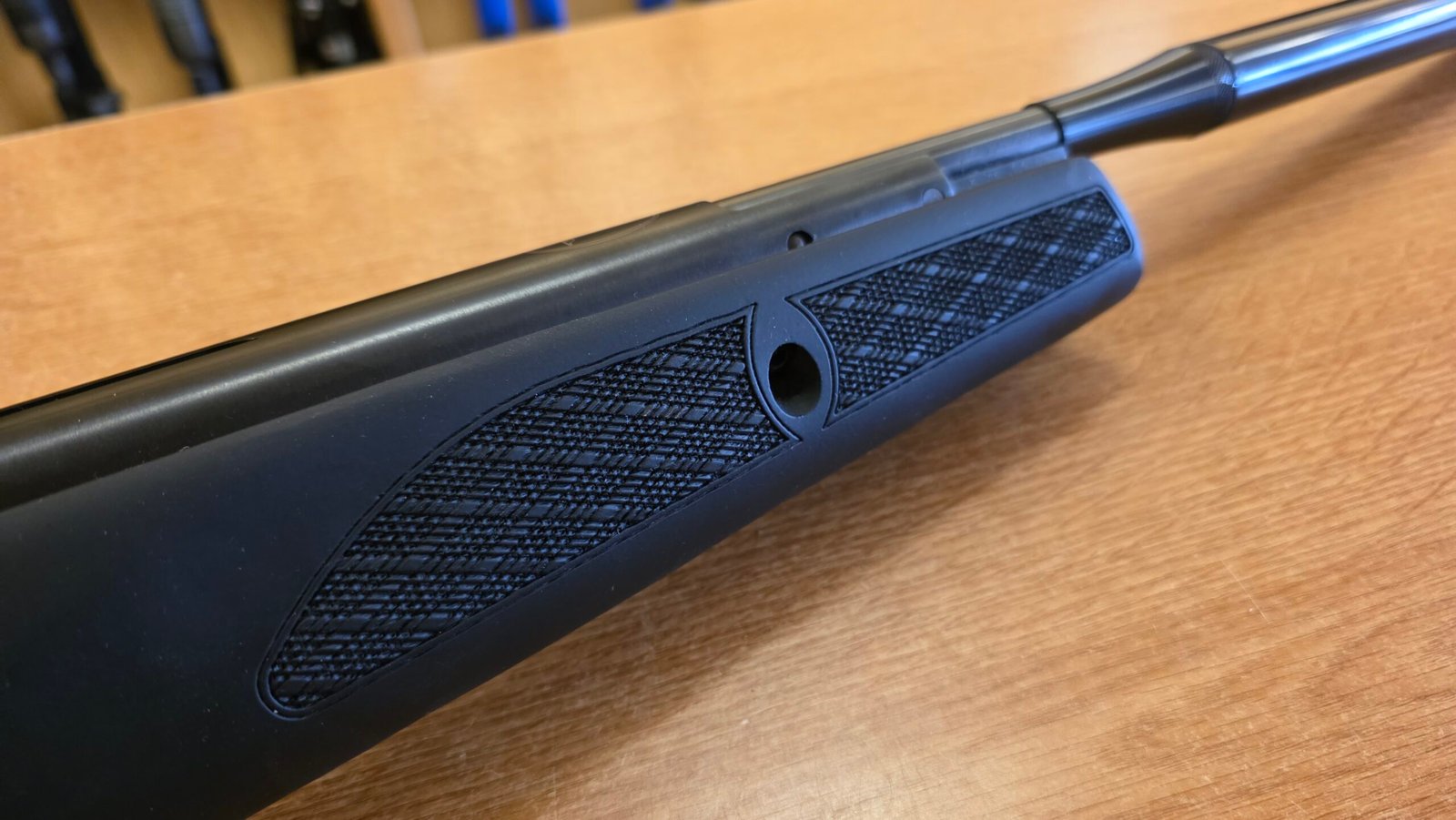 Kaliber .177 (4.5 mm) memberikan lintasan peluru yang datar dan kecepatan tinggi, menjadikannya ideal untuk target shooting, plinking, hingga kompetisi akurasi ringan. Dilengkapi dengan stok kayu beech berkualitas tinggi, laras full shrouded dengan peredam bawaan, serta trigger dua tahap yang bisa disetel, senapan ini menghadirkan pengalaman menembak yang nyaman dan presisi.