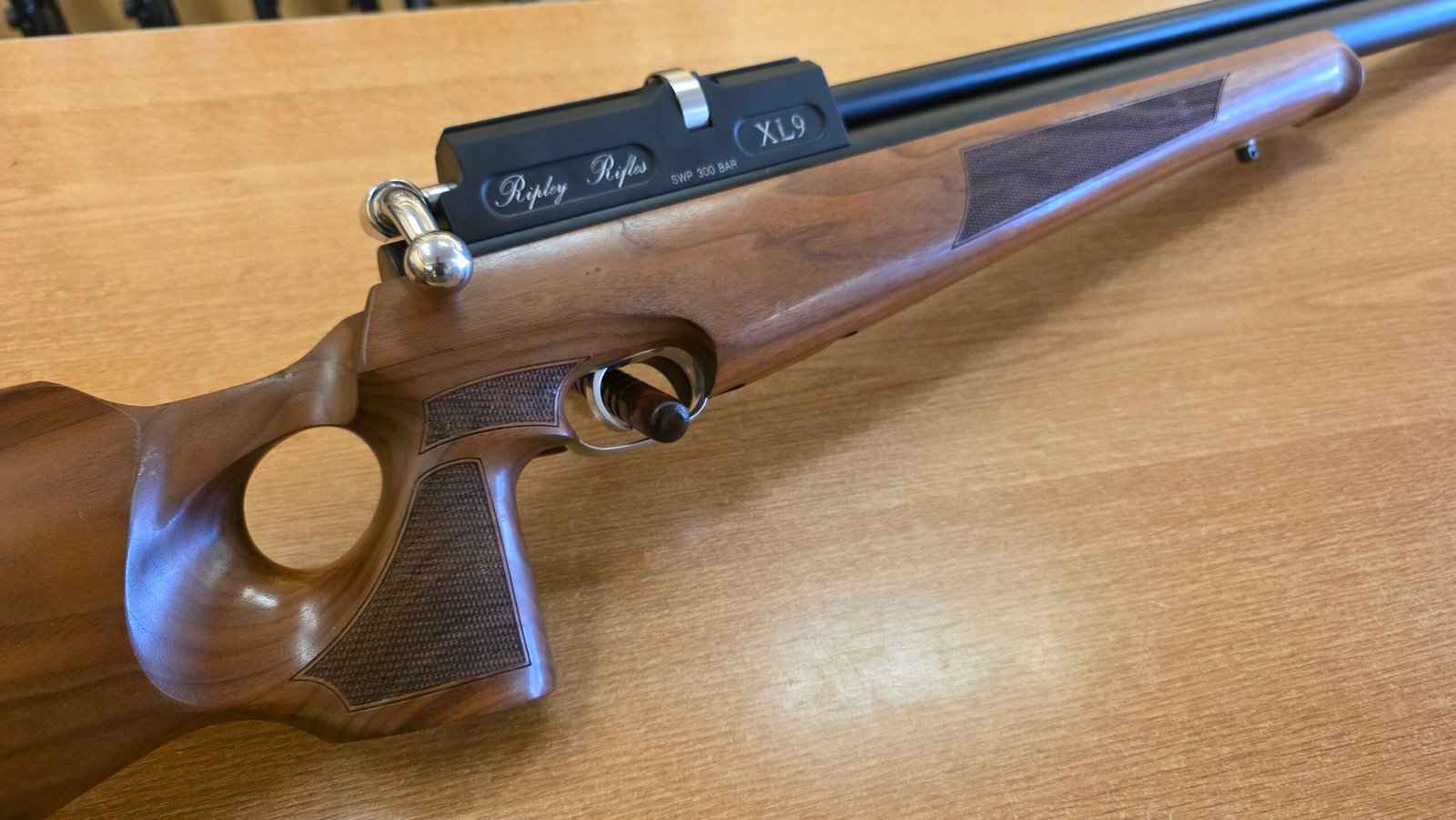 Ripley XL9 .22 adalah senapan angin PCP (Pre-Charged Pneumatic) custom berkualitas tinggi, dibuat secara handcrafted oleh seniman senapan kenamaan asal Inggris, Steve Wilkins (Ripley Rifles). Model XL9 dirancang untuk akurasi ekstrem, konsistensi tinggi, dan performa kompetisi — menjadikannya koleksi prestisius sekaligus alat tembak presisi kelas dunia.