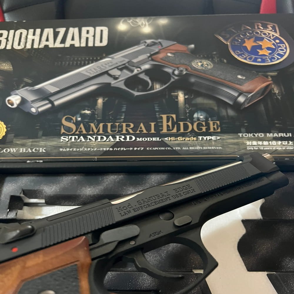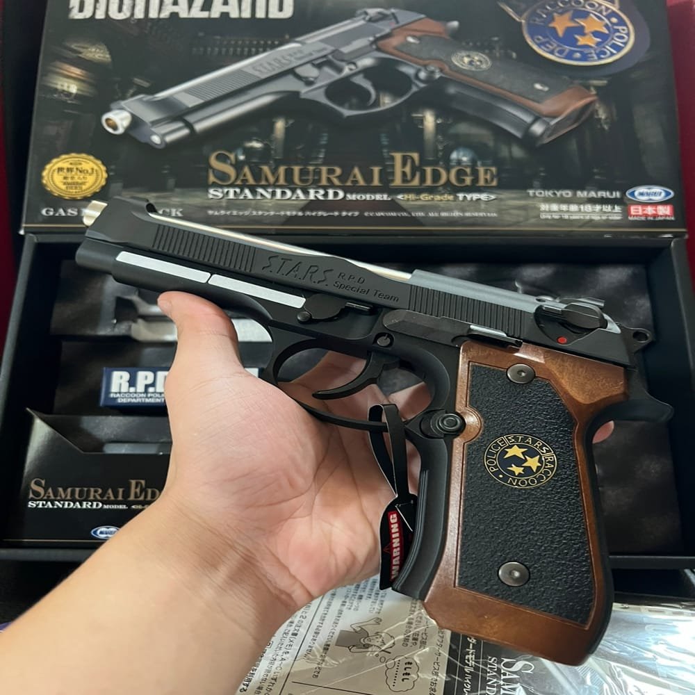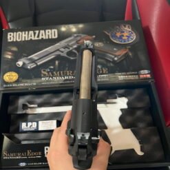 Dengan magazine kapasitas 26+1 rounds, build ABS premium, serta berat 944g, Samurai Edge terasa kokoh dan seimbang, cocok untuk kolektor Resident Evil maupun pemain airsoft kompetitif.